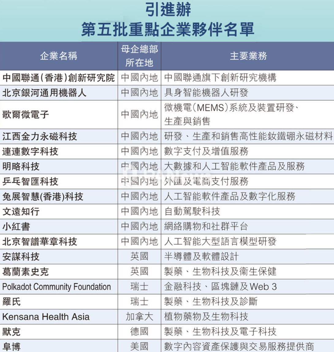 PANews reported on October 11th that, according to Hong Kong media reports, the Hong Kong SAR government's Office for the Introduction of Key Enterprises announced its fifth batch of companies, comprising nearly 40% overseas companies in sectors such as artificial intelligence, biohealth, and cultural and creative technology. Among them, blockchain protocol layer project Polkadot will establish a presence in Hong Kong to participate in R&D and business development. Over the past two years, a total of 102 companies have been introduced, expected to bring in approximately 60 billion yuan in investment and create approximately 22,000 high-quality jobs.