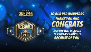 The CGWC momentum continues with the PLO AfterParty, which features $70,000 in overall cash prizes added on top of the daily $12,000 CoinRaces leaderboards, available from November 3 to November 17, 2025.