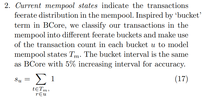 \ – Mempool states, which records the distribution of feerates of unconfirmed transactions in the mempool, implicitly modelling the competition among unconfirmed transactions.