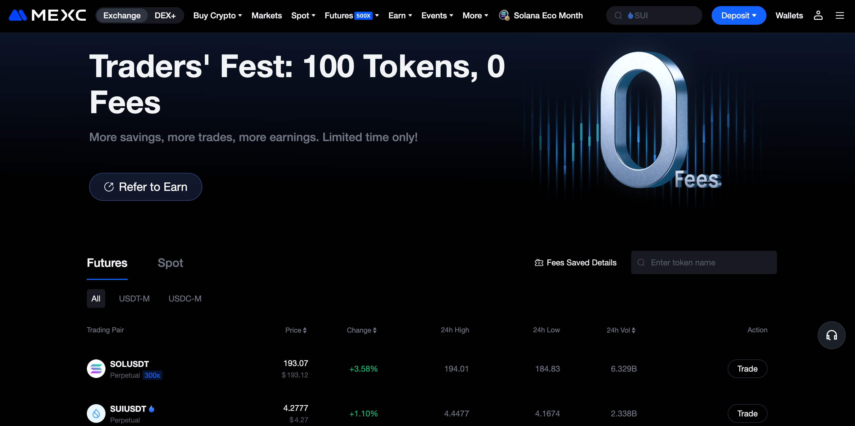 El Festival de traders con 0 tarifas es un evento de MEXC que ofrece cero tarifas de trading en 100 pares de Futuros. No se requiere registro. Los usuarios disfrutarán de 0% de tarifas maker y taker al operar en los pares elegibles.