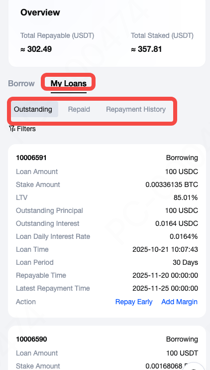 After successfully borrowing, you can find this MEXC Loans order under My Loans.