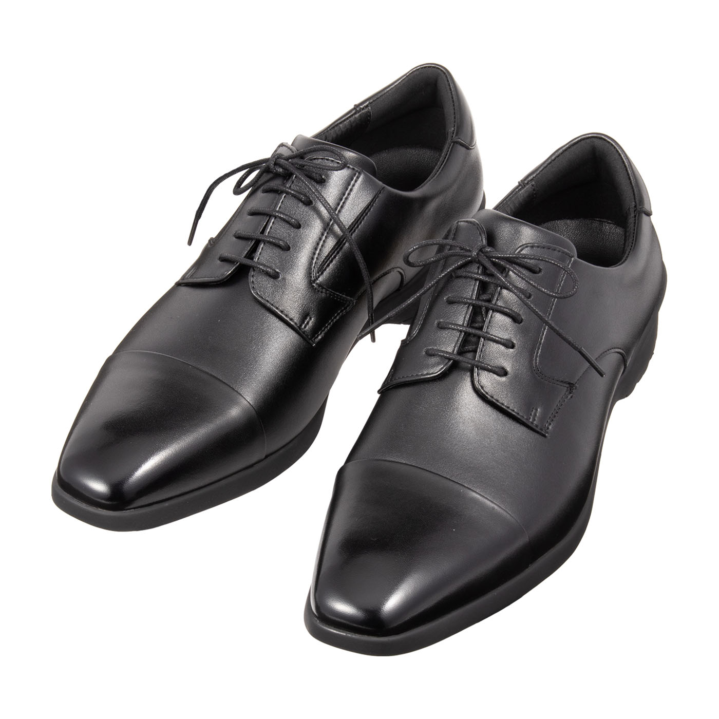 青山商事の「ビジネスシューズ BD1ABL 」は、歩きやすさ重視の人におすすめです。アウトソールをタイヤ柄にしたことで、スニーカーのような快適な履き心地を実現したと謳います。また、つま先には天然皮革を使用しているのも特徴です。歩きやすさの検証では、大多数のモニターの足にしっかりとフィットし、トップクラスの評価を獲得。横幅にもかかとにもほどよい密着感があり、包み込まれるようなホールド力がありました。インソールはクッション性が高く、モニターから「疲れずに歩ける」「ランニングシューズのような感覚で歩ける」と好評。特別ムレやすくはありませんが、帰宅後はきちんと内部を乾燥させてくださいね。耐水性の高さも魅力のひとつ。10分間水を当て続けても、中の靴下は一切濡れていませんでした。さらに、靴を濡れたコンクリート板の上に置き荷重計で引っ張った際にも高いグリップ力を発揮。雨の日でも、滑ったり濡れたりする心配はほとんどありません。大部分が合成皮革であるため手入れは比較的楽ですが、天然皮革より経年劣化しやすい点には留意しましょう。歩きやすさと手入れのしやすさを兼ね備えているので、はじめてのビジネスシューズにぴったりな一足といえます。長く歩いても疲れにくいので、外回りで1日歩く人にもぴったりですよ。ぜひ検討してください。