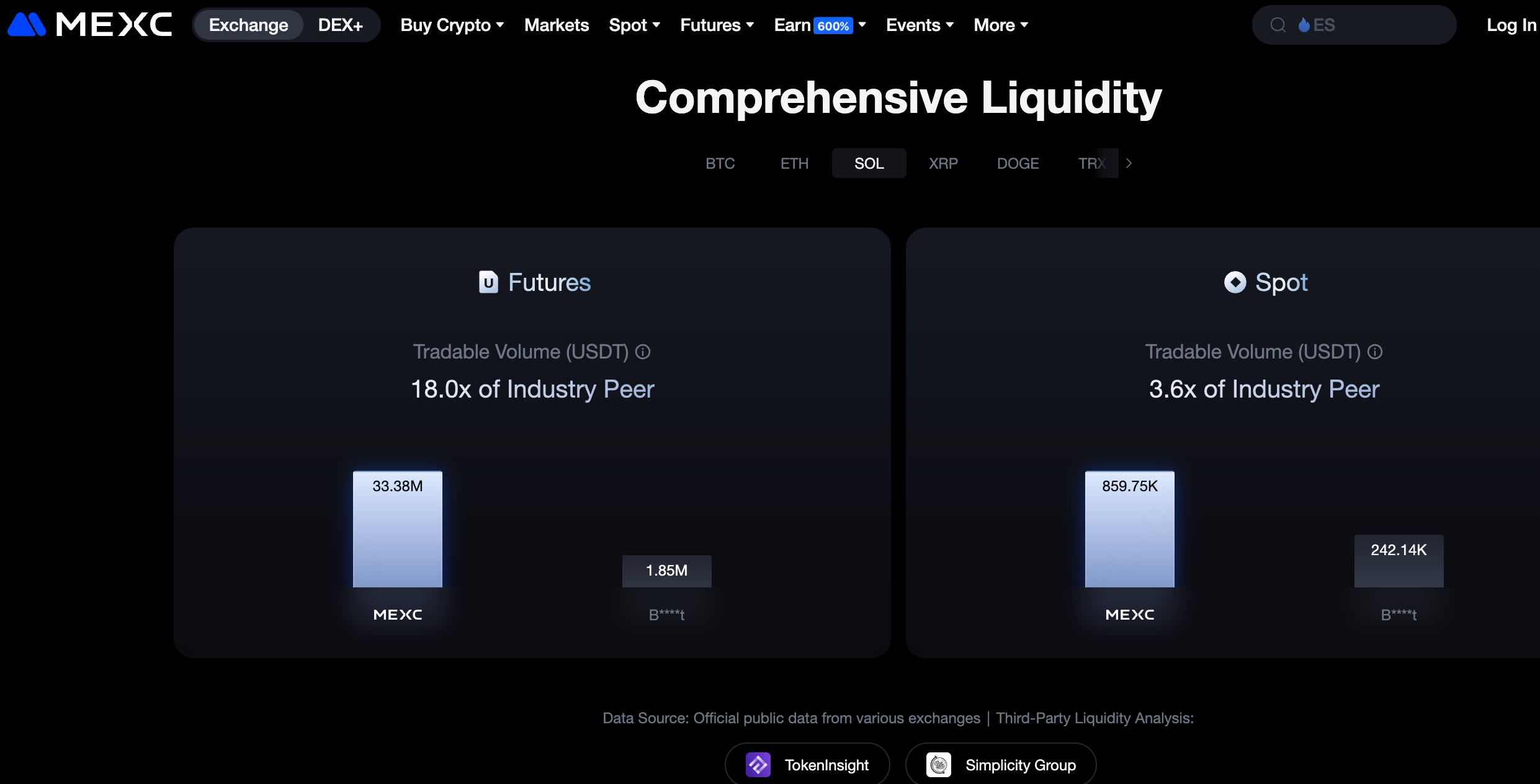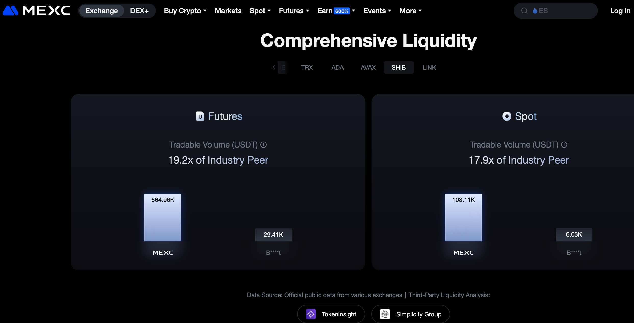However, according to the statistics of two professional institutions, Tokeninsight and Simplicitygroup, MEXC also has an absolute advantage in the liquidity of futures trading of the vast majority of counterfeit products. For example, in the SOLUSDT trading pair, the total amount of limit orders within ± 5 basis points of the middle price of the trading pair exceeded 33 million USDT, which is 18 times that of the top 3 competitors in the industry. The advantage in the SHIBUSDT trading pair has reached 19.2 times.