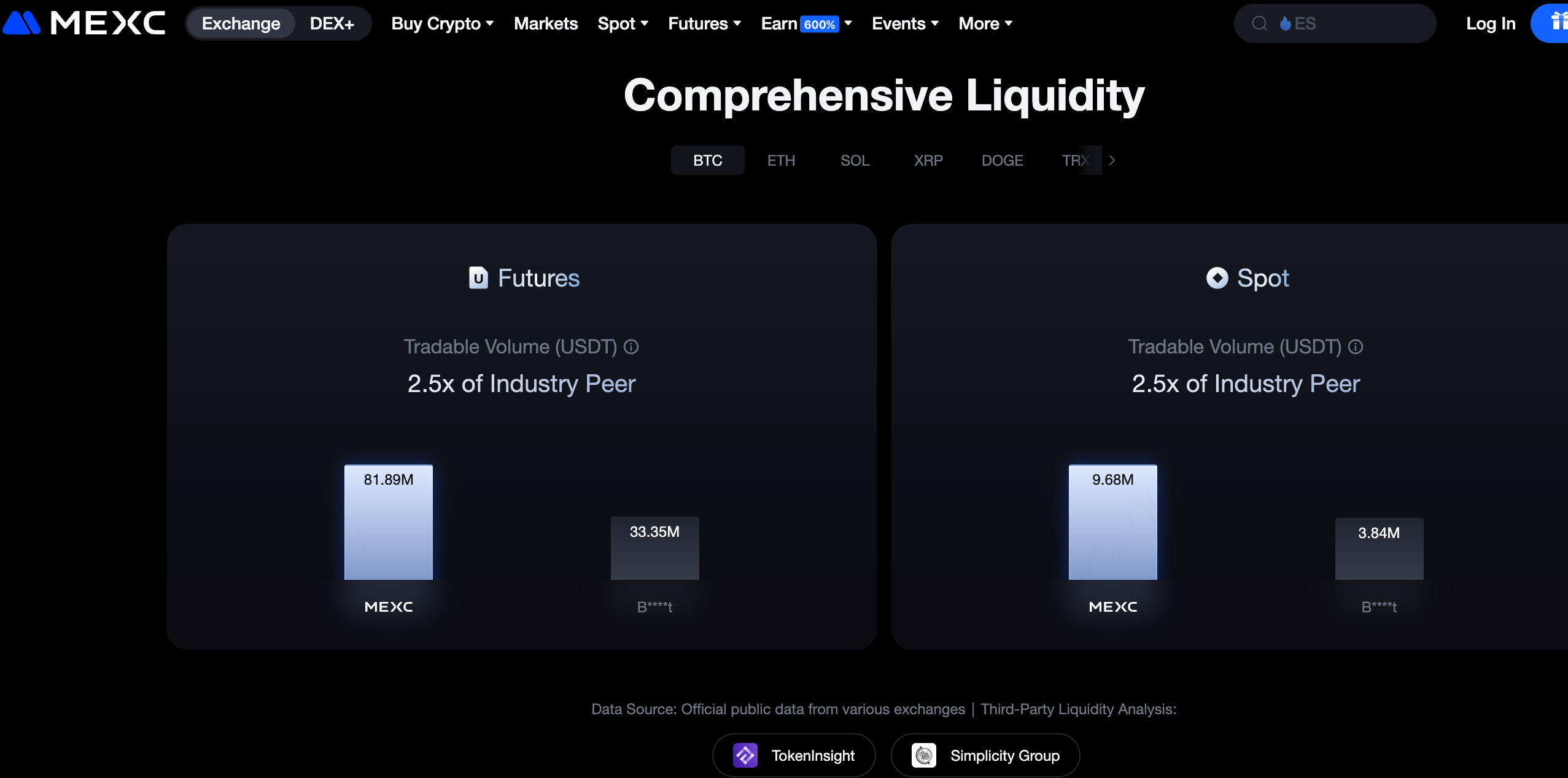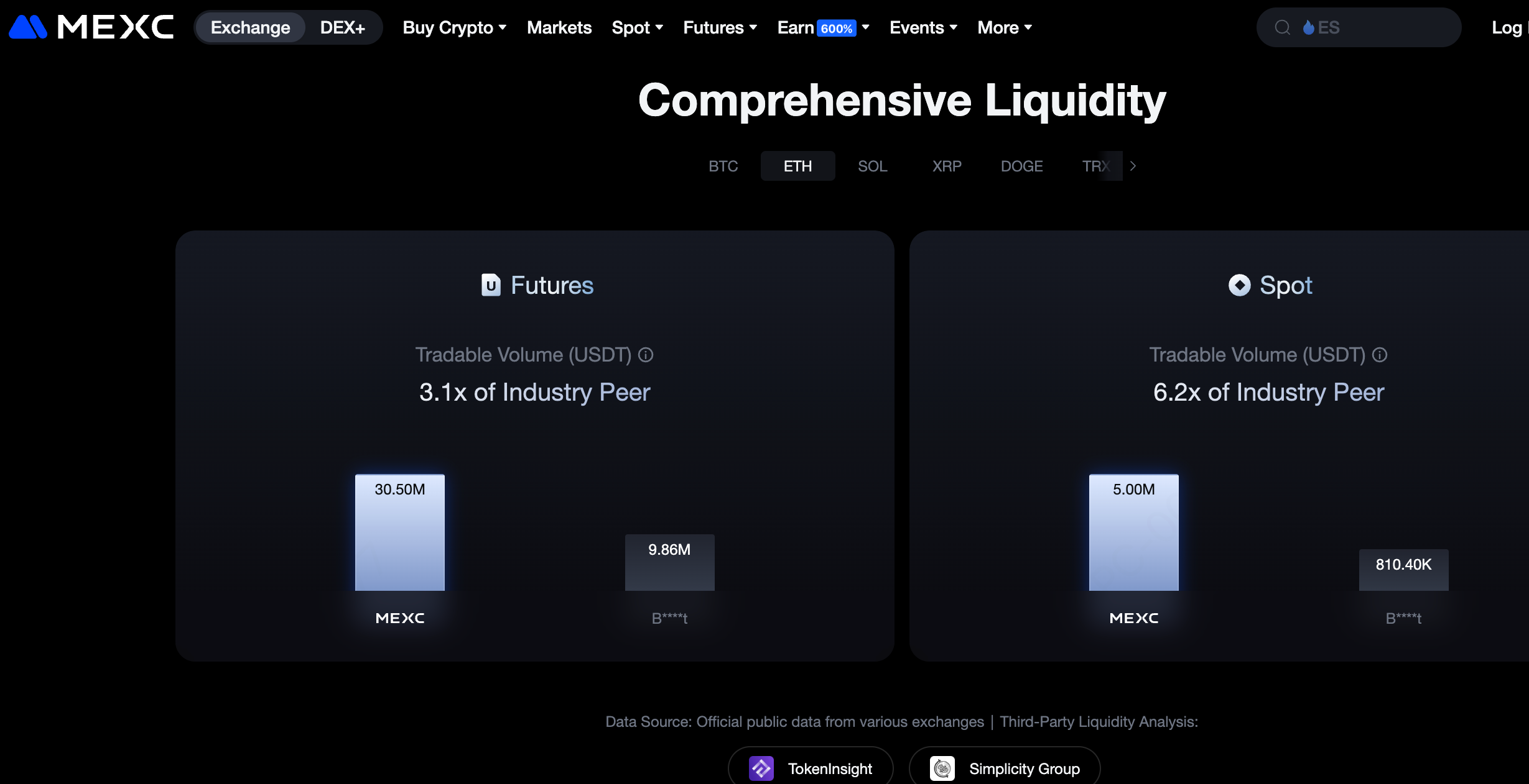 On the MEXC platform, the futures trading liquidity of mainstream coins such as BTCUSDT and ETHUSDT has an absolute leading advantage.