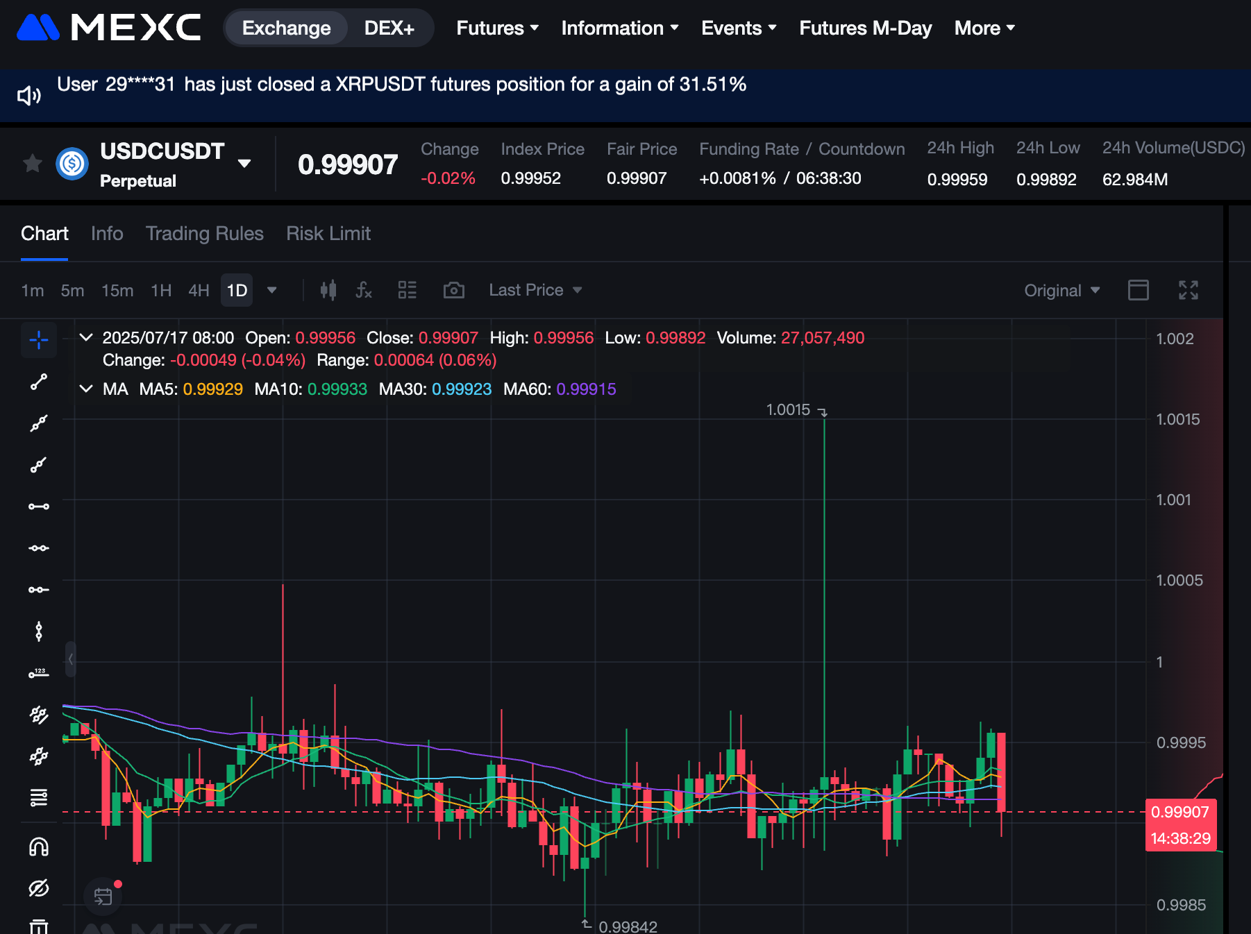 At present, MEXC has launched USDCUSDT perpetual futures, providing diversified investment products for users.