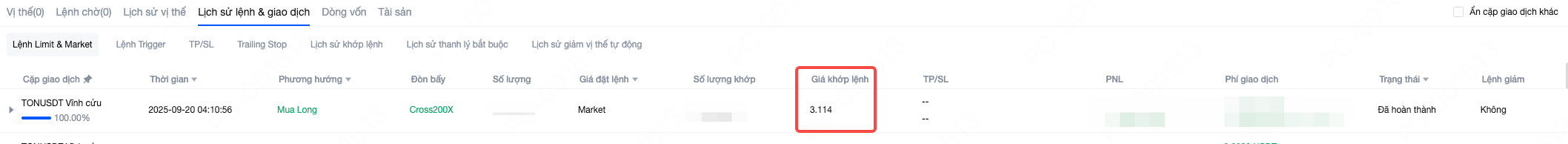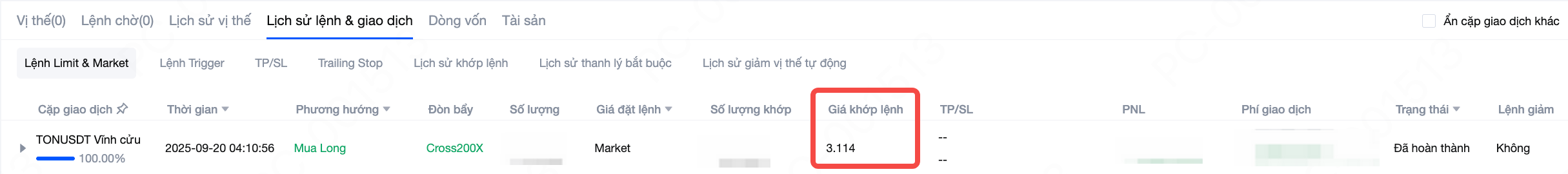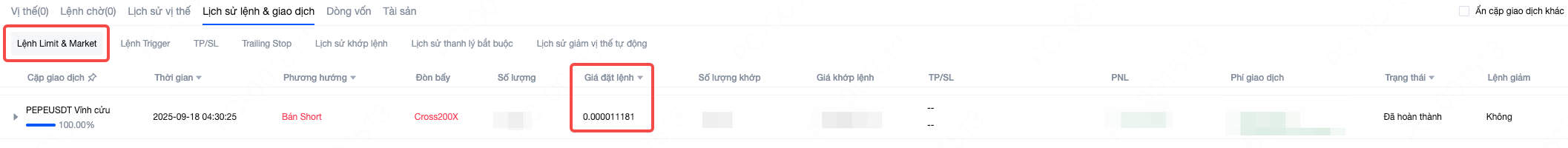 Lệnh Limit cho Đóng Long/Đóng Short chỉ có thể được khớp tại giá mới nhất hoặc giá tốt hơn (tức là trong điều kiện có lợi nhuận).