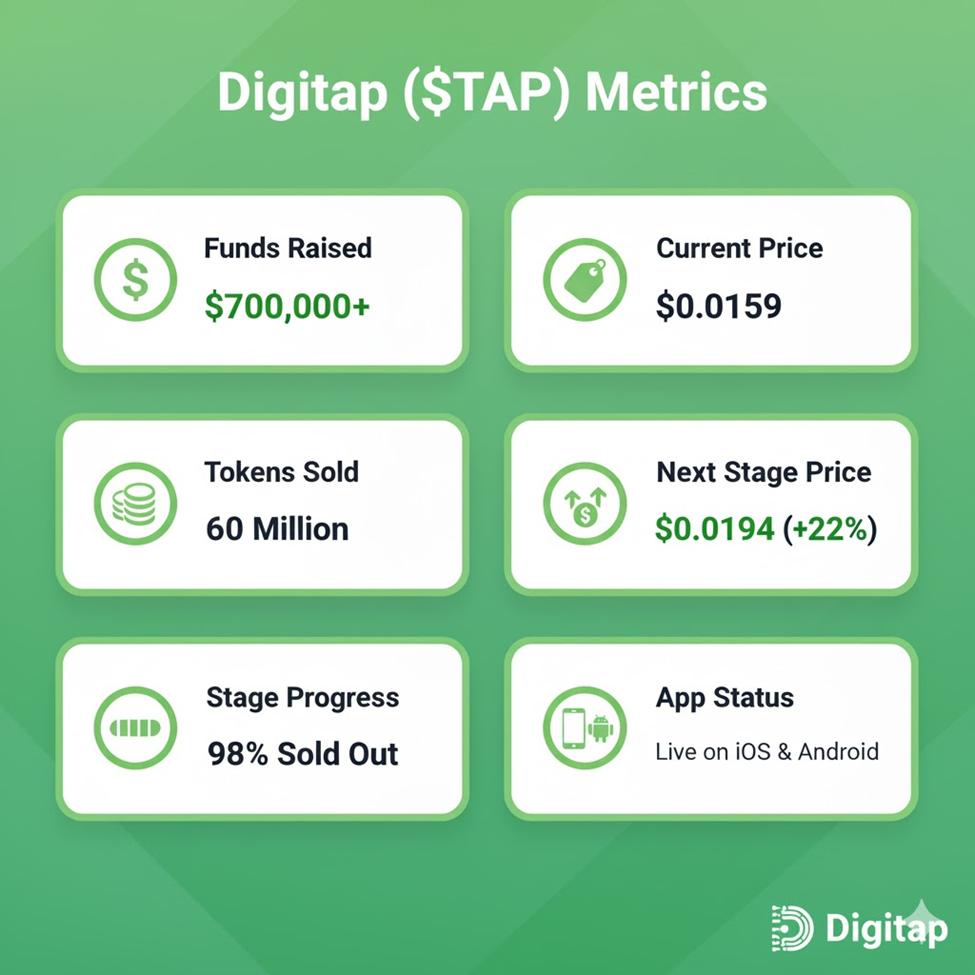籌集了 700,000 美元,擁有一個運行中的應用程式,以及即將到來的 22% 價格上漲,Digitap 不僅僅是在生存 — 它正在蓬勃發展。對於尋找現在最佳加密貨幣投資的投資者來說,這次預售是一個難得的機會,可以在大眾發現之前參與。