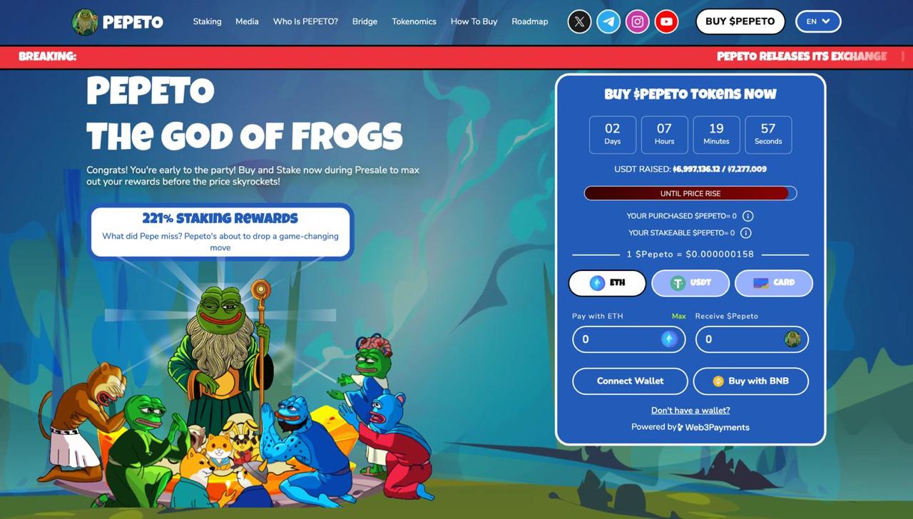 而且背景故事也很吸引人。Pepe 代表力量 (Power)、能量 (Energy)、精確 (Precision)、效率 (Efficiency)。Pepeto 擁有技術 (Technology) 和機會 (Opportunity),這些缺失的字母將文化轉變為能力。